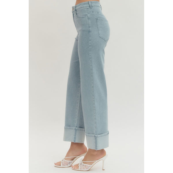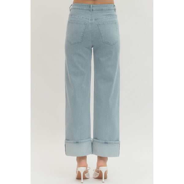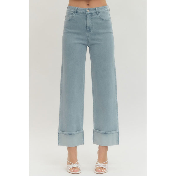 Entro - Wide Leg Jeans w Cuff - Light Blue