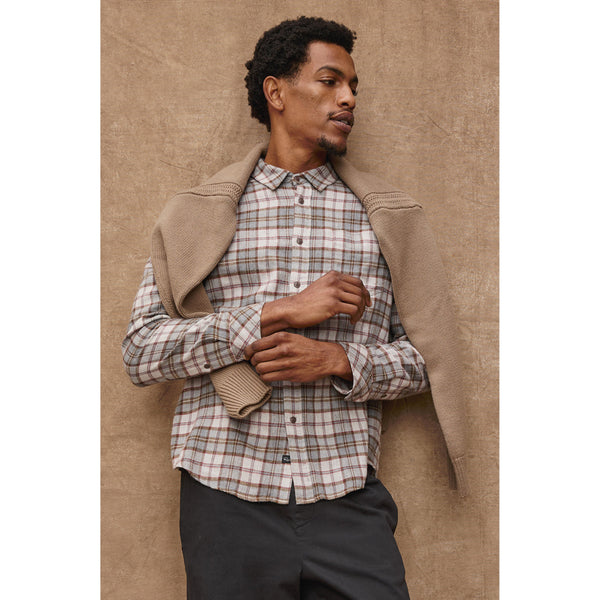 • A best-selling shirt, the Lennox, is made with a luxe melange yarn, brushed on both sides for extra softness and lasting comfort, featuring a single chest pocket and metal buttons to create a novel look.