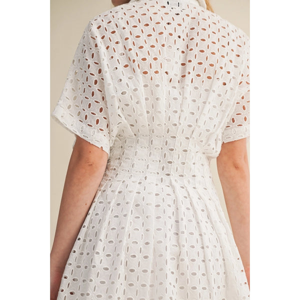 Miou Muse - Eyelet Fabric Button Front Shirt Dress - White