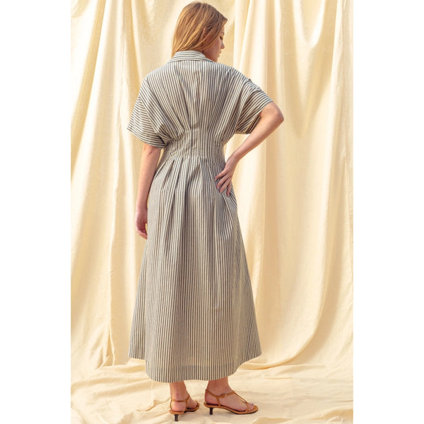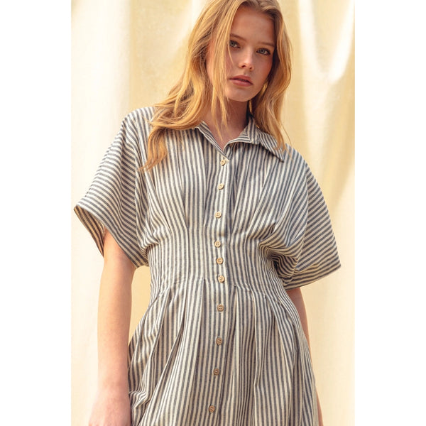 Miou Muse - Striped Buttondown Dress Shirt - Navy Stripe