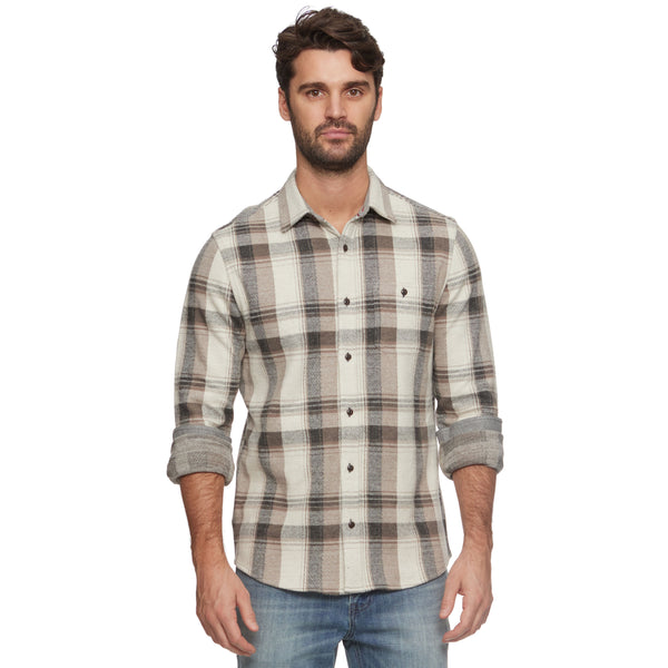 Flag & Anthem Clearbrook Long Sleeve Hero Knit Flannel - Cream/Charcoal