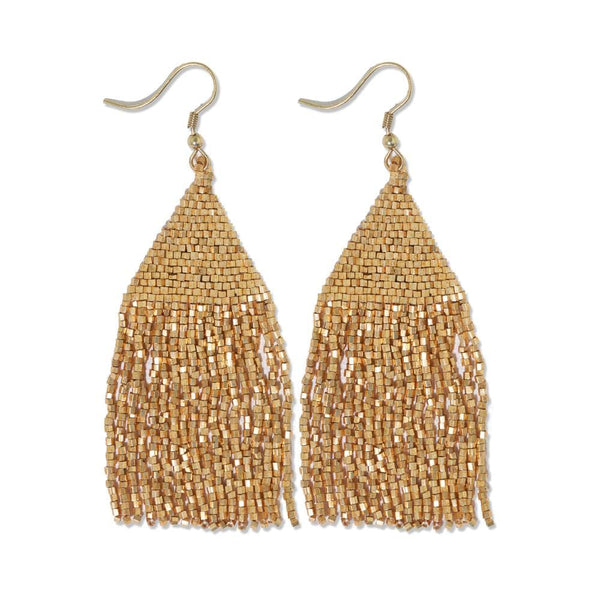 Part of Ink + Alloy's luxe collection accessories, the luxe petite fringe earring is hand crafted by artisans in India. Delicate glass beads with an elegant shimmer are woven for a luminous, lightweight and effortlessly cool beaded statement accessory.