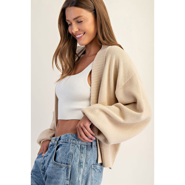 ee:some - Open Front Bubble Sleeve Knit Cardigan - Sand