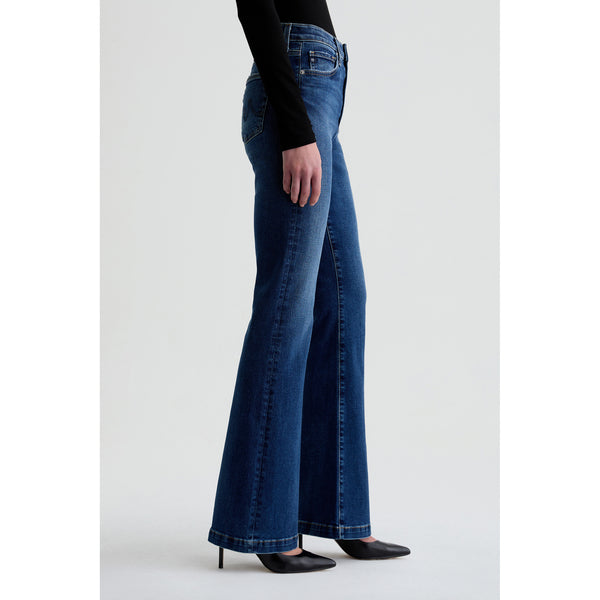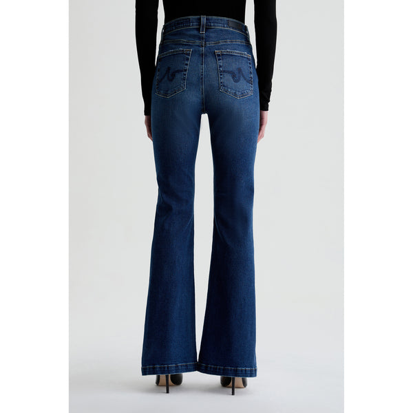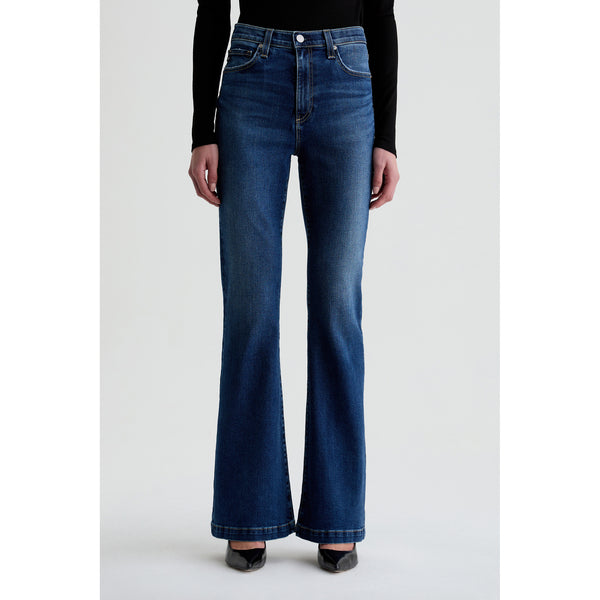 The Madi is a high-rise flare jean crafted from power-stretch denim. Designed to elongate the legs and hug the body with its flared-out hem design, this style combines a sleek dark wash with a flexible fit that moves with you while maintaining its shape. Crafted from premium denim sourced from Japan’s Kaihara Mill.