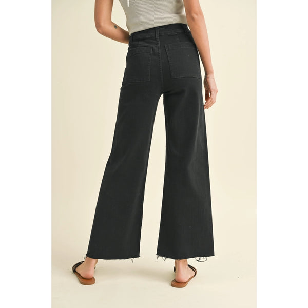 Miou Muse - Straight Wide Leg Denim Pants - Washed Black