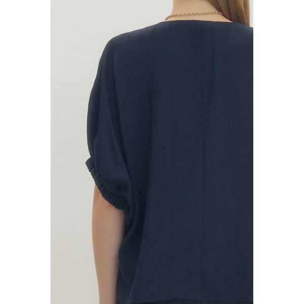 Entro - Solid Dolman w V-Neck Accent - Navy