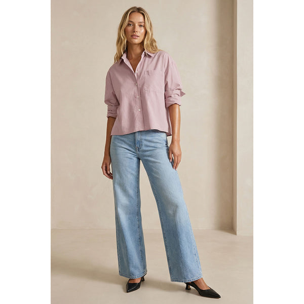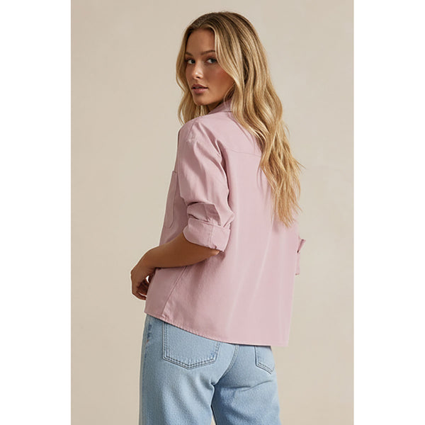 Naked Zebra - Rolled Sleeve Button Up Blouse - Dusty Pink