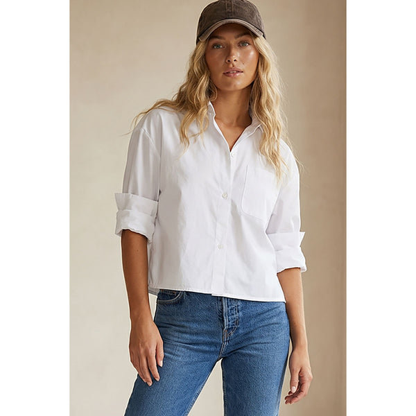 Naked Zebra - Rolled Sleeve Button Up Blouse - White