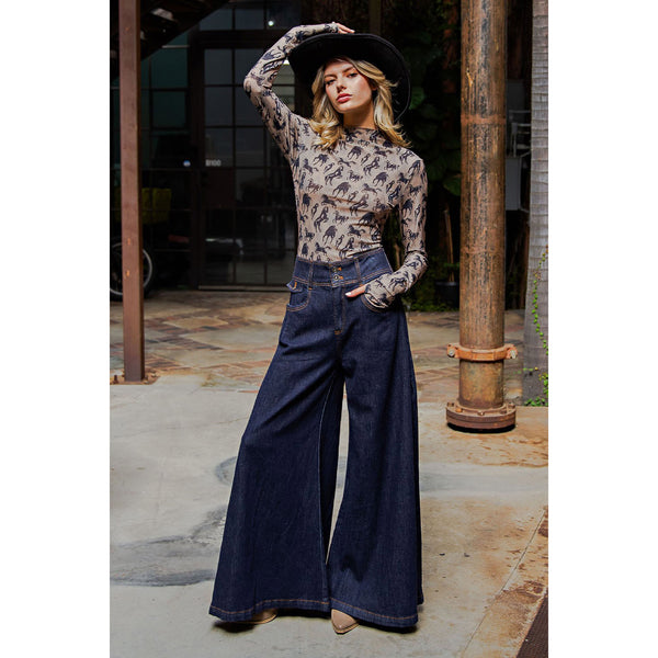 ee:some - Mesh Western Horse Graphic Mock Neck - Taupe