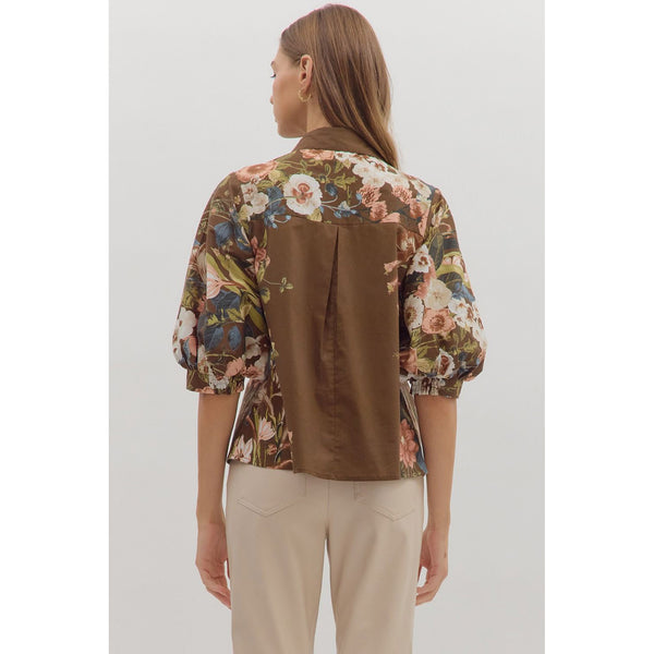 Entro - Floral Side Print 3/4 Sleeve - Brown