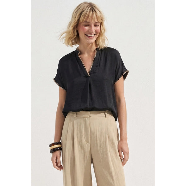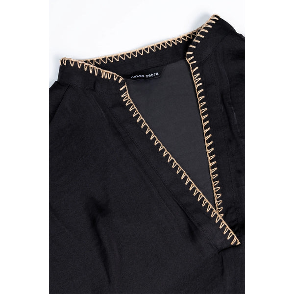 Naked Zebra - Whipstitch Drop Shoulder Regular Blouse - Black